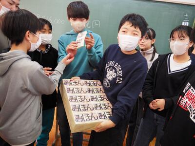 1億円のレプリカを手にして、お金の重さとともに大切も感じたようでした。