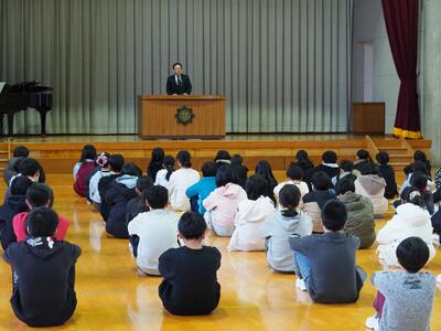 式では2名の児童が、2学期にがんばったことを発表し、学習や行事、友達との関わりを通して成長した姿をふり返りました。一人ひとりが、それぞれの場面で努力を重ねてきた2学期だったのではないでしょうか。