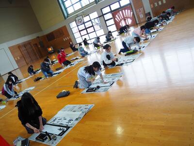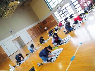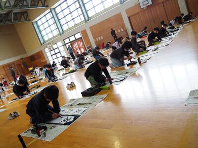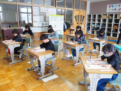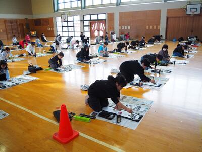 1月8日(木)3~6年生は体育館の会場に「毛筆」で、1・2年生はそれぞれの教室で「硬筆」で、校内書き初め大会が行われました。