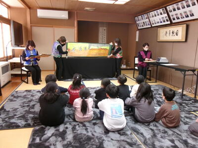 教科書にある「スーホの白い馬」の作品の読み聞かせをはじめ、作品の舞台となるモンゴルの紹介もしていただきました。