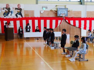 1年生と6年生の児童が、1年間の成長や小学校生活の思い出と中学校生活への希望を発表しました。
