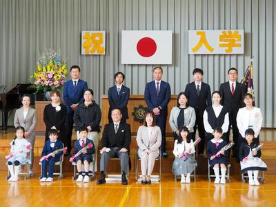 令和7年度入学式。新入生6名です。今年度から教育委員会、PTA会長、学校運営委員会会長、区長会長、こども園長の方々においでいただきました。ご家族の方と一緒にお祝いすることができました。