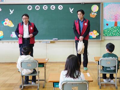 4月9日(水)ライオンズクラブ様より1年生に、黄色い帽子が贈呈されました。