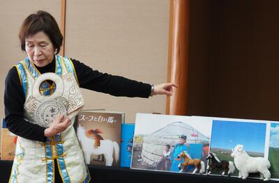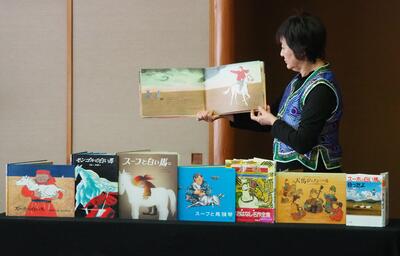 2月21日、ムーミンママという読み聞かせボランティアサークルの皆さんがおいでくださり、2年生が『スーホの白い馬』を聞きました。2年生の国語の教科書に出ているお話です。巻物風にお話を読んでいただき、そのあとモンゴルの馬頭琴が題材となった絵本の紹介がありました。物語の舞台となったモンゴルの生活のことも教えてもらい、最後に衣装も着ることができました。たっぷり『スーホの白い馬』の世界に浸りました。