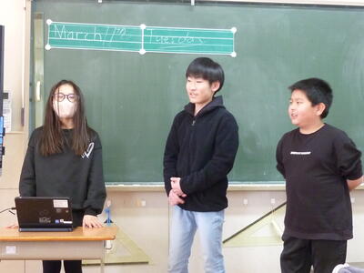 6年生は最後の英語の授業で「西里小学校の思い出」をトップ3にまとめ発表会をしました。3年生から学んできた英語の集大成です。自分たちの発表を校長先生に堂々と発表しました。