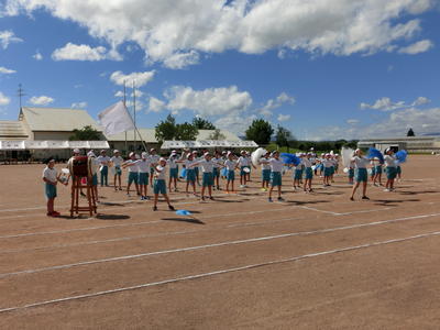 気温25℃、曇り空の涼しい開会式から、一転して途中から猛暑の中での運動会となりました。1年から6年までの徒競走の得点は、赤183点、白184点。まり入れの得点は、赤80点、白40点。綱引きは、赤40点、白80点。宝島は、赤80点、白40点。全校リレーは、男女とも50点ずつで同点でした。結果、赤組483点、白組444点で、5年ぶりの赤組優勝でした。結果的には、宝島の差が勝敗を左右しました。全校リレーの前に決まる応援賞は、赤392点、白396点で僅差で白組となりました。途中、応援に駆けつけてくださいました森谷俊雄町長様、板坂憲助教育長様、そしてPTA役員の方々のご協力をいただき、多くの保護者の皆様方に見守られて、運動会を行うことができました。心から感謝申し上げます。