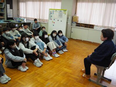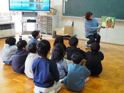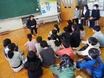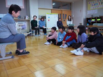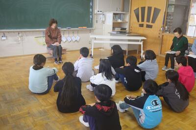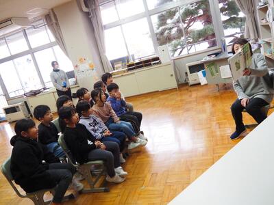 全校生徒を対象に、昔語りの会さんとひまわりサークルさんによる読み聞かせを行っていただきました。