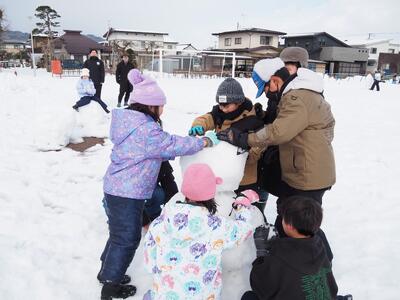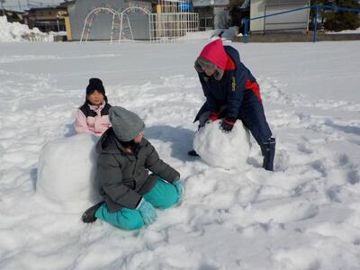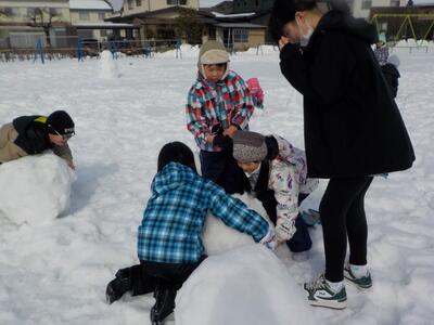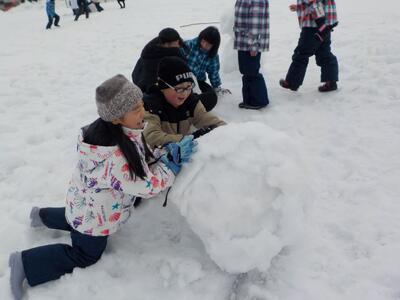 みんなで楽しく、雪だるまつくり~縦割り班遊び~