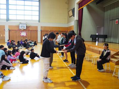 また、6年生からは児童会活動や縦割り班活動の引継ぎも行われました。